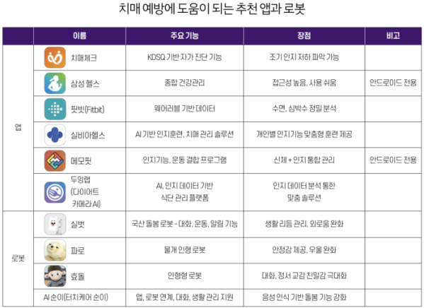 치매는 나이와 함께 찾아오는 불가피한 질병이 아니다. 연구에 따르면 생활 습관 관리와 꾸준한 뇌 자극 활동, 운동, 사회적 교류, 충분한 수면, 만성질환 관리가 치매 발병 위험을 낮출 수 있다고 한다. 최근에는 이러한 활동을 돕는 돌봄 로봇과 디지털 앱이 등장해 ‘예방 중심 돌봄’의 가능성을 넓히고 있다.