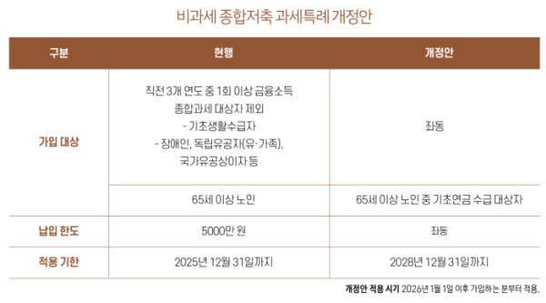 비과세 종합저축 가입 대상 및 적용 기한 조정
