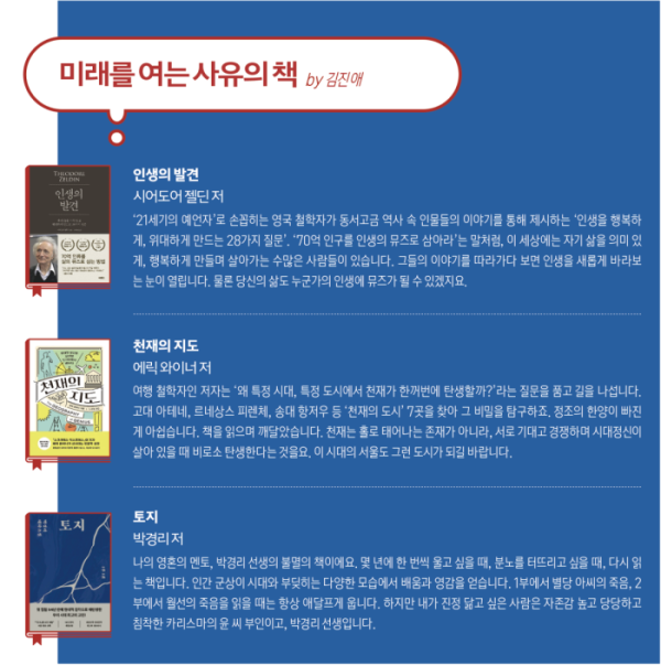 북인북은 브라보 독자들께 영감이 될 만한 도서를 매달 한 권씩 선별해 소개하는 코너입니다.해당 작가가 추천하는 책들도 함께 즐겨보세요.