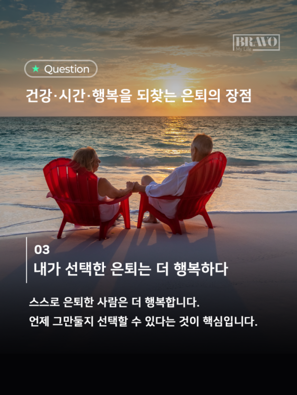결국 은퇴는 공백과 동시에 기회가 공존하는 시기다. 은퇴 이후 삶을 단단하게 만드는 몇 가지 요소를 카드뉴스로 확인해 보자.