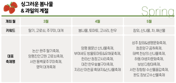 봄볕 아래 피어나는 싱그러운 나물부터 한여름 밤을 시원하게 채우는 맥주, 풍요로운 가을 들녘의 햇곡식, 겨울 바다의 깊은 맛까지. 우리나라는 사계절 내내 다채로운 식재료와 개성 넘치는 먹거리 축제가 끊이지 않는 미식의 천국이다. 전국 축제장 중 언제, 어디로 가야 맛있게 즐겼다고 소문이 날까? 전국 제철 먹거리를 다룬 대표 축제를 계절과 월별로 정리했다.
