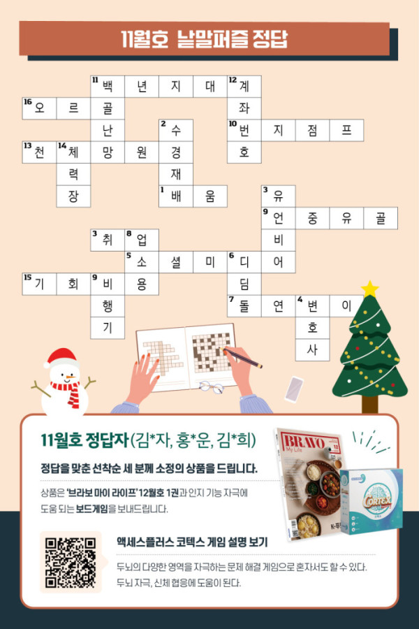 브라보 마이 라이프에서는 월 1회 가로세로 낱말퍼즐을 연재합니다.