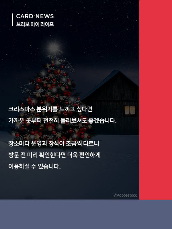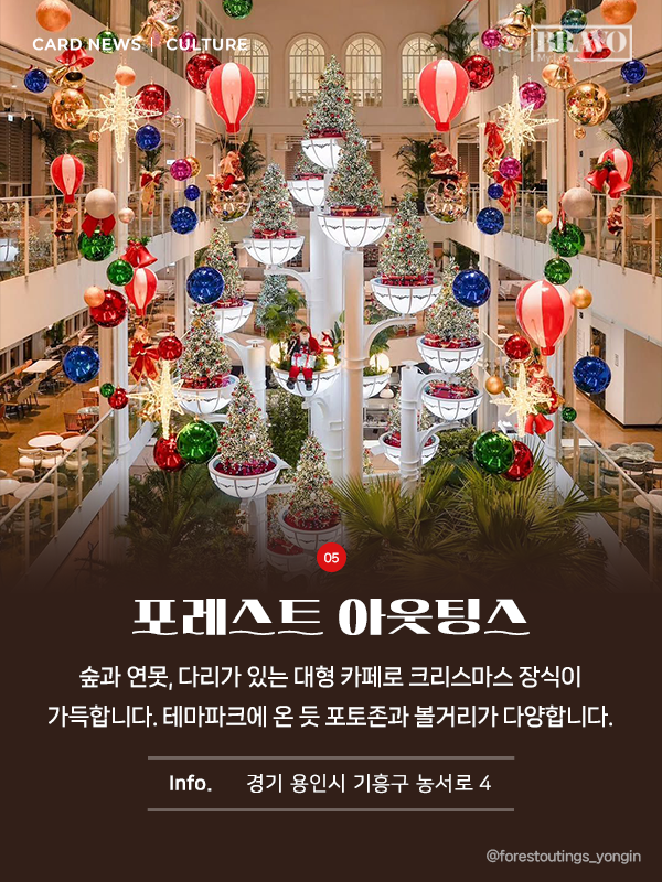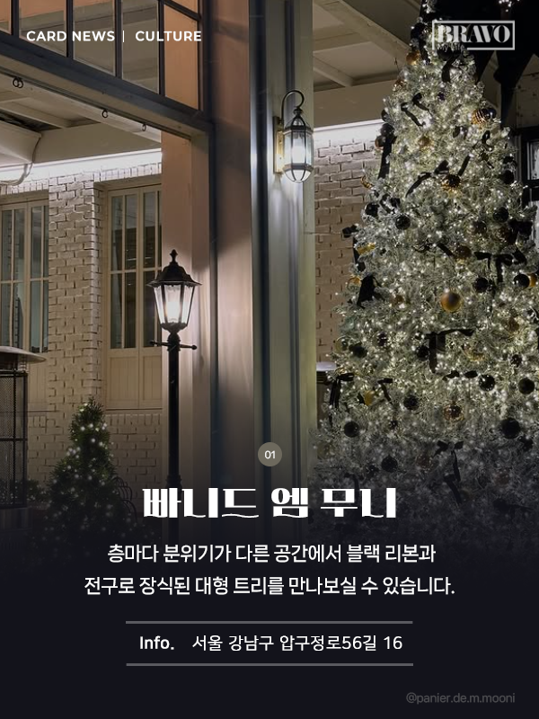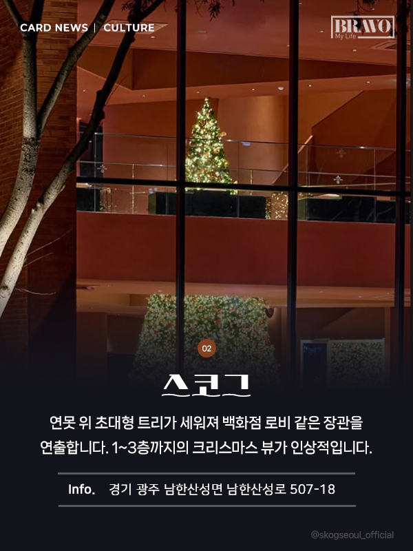 이번 크리스마스 시즌, 특별한 연말 분위기를 먼저 느껴보고 싶다면 대형 트리 카페를 방문해 보는 것은 어떨까. 서울과 경기 지역에서 만날 수 있는 주요 대형 트리 명소를 카드뉴스로 정리했다.