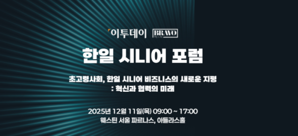 이투데이와 이투데이피엔씨는 오는 11일 오전 9시부터 서울 강남구 웨스틴 파르나스 아틀라스홀에서 '2025 한일 시니어 포럼'을 개최한다고 밝혔다. 포럼 주제는 '초고령사회, 한일 시니어 비즈니스의 새로운 지평: 혁신과 협력의 미래'다.
