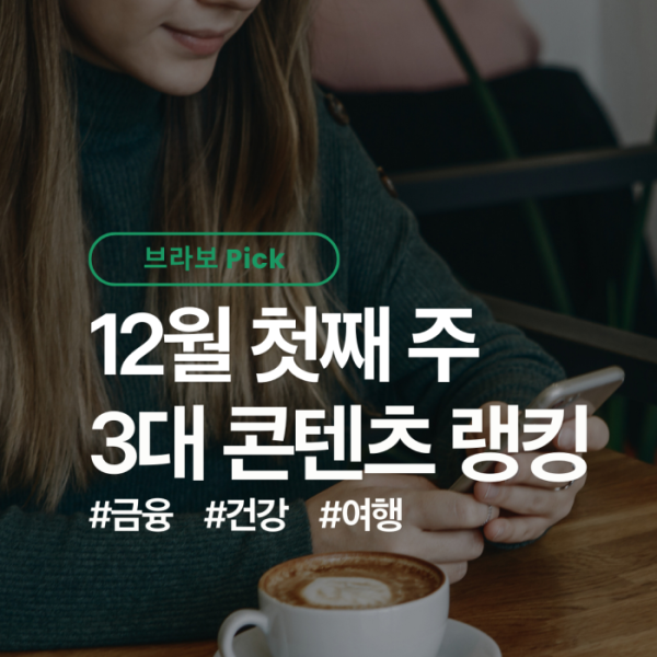 12월 첫째 주 유튜브 주요 채널의 조회 흐름과 포털 사이트 관심도를 바탕으로 이번 주 '3대 콘텐츠 랭킹'을 선정했다. 금융 분야에서는 '희망퇴직' 관련 키워드의 관심이 높았고, 건강 분야에서는 최근 당뇨 치료제 '마운자로'가 건강보험 급여 적용 가능성이 높아지며 많은 관심을 받았다. 여행 분야에서는 서울에 첫 눈이 내리면서 '겨울에 여행하기 좋은 곳'의 검색량이 올라갔다.