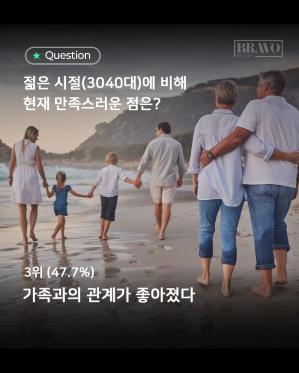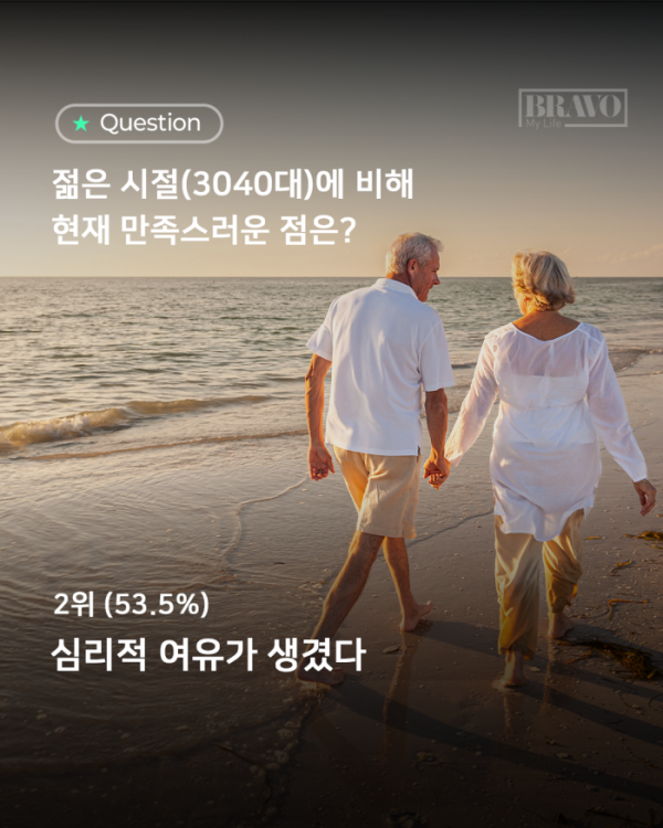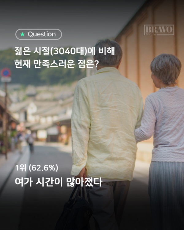 시니어들이 젊은 시절(3040대)과 비교해 가장 크게 체감하는 변화는 여가시간의 증가였다. 심리적·재정적 여유와 가족관계가 이전보다 좋아졌다는 응답도 높게 나타나면서 시니어의 일상은 여가를 누리기 좋은 방향으로 이동하고 있는 모습이 포착됐다.