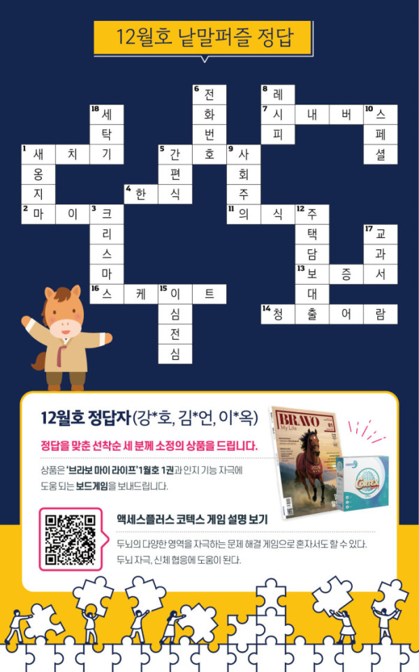 브라보 마이 라이프에서는 월 1회 가로세로 낱말퍼즐을 연재합니다.
